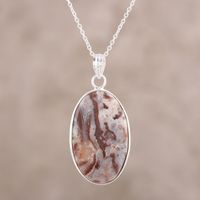 Oval Agate Pendant Necklace in Pink and Russet from India 'Intricate Island' Item ID: 2671792503