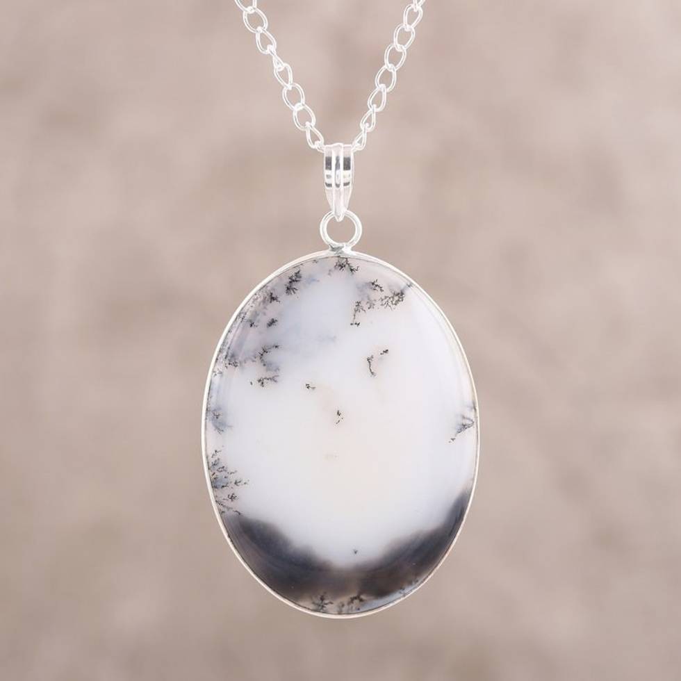 Oval Agate Pendant Necklace in White and Black from India 'Arctic Beauty' Item ID: 2671792563