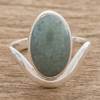 Oval Apple Green Jade Cocktail Ring from Guatemala 'Mystery of the Earth' Item ID: 2669923665