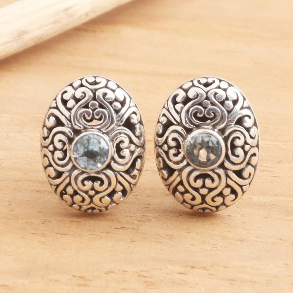 Oval Button Earrings in Sterling Silver with Blue Topaz 'Traditional Charm' Item ID: 2671744767
