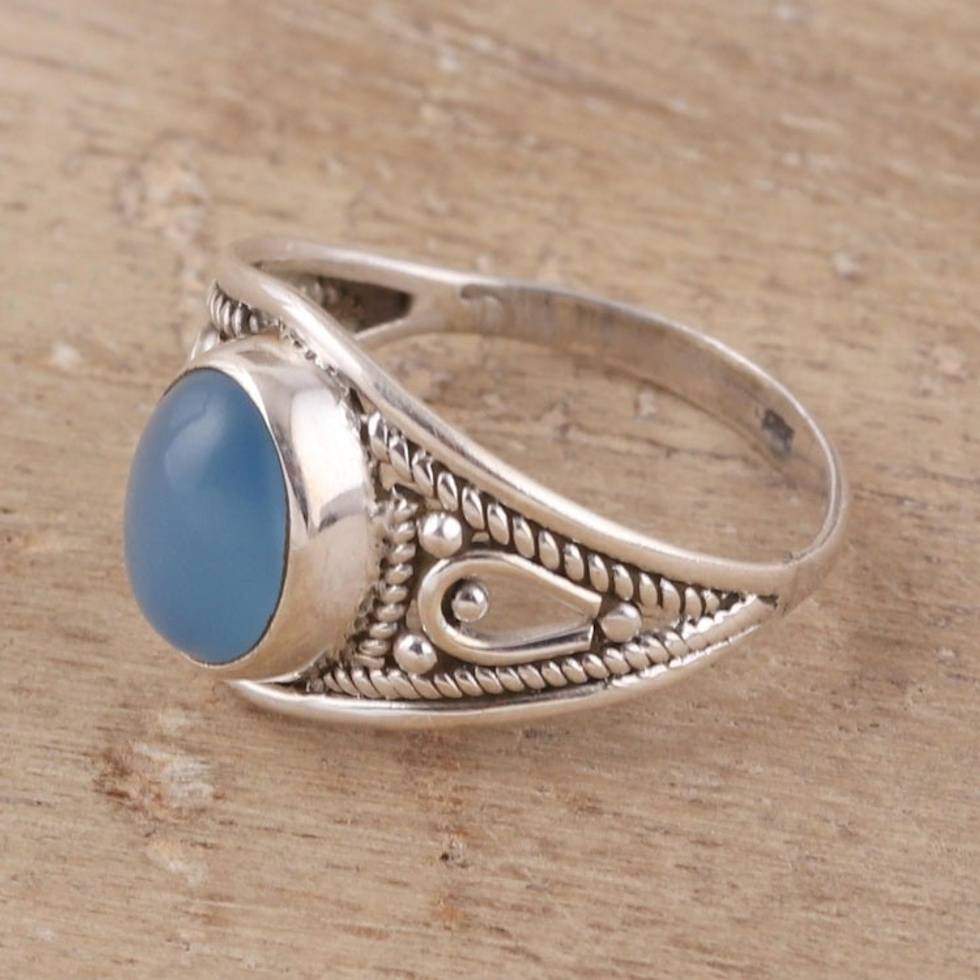Oval Chalcedony Cocktail Ring Crafted in India 'Gleaming Appeal' Item ID: 2669924030