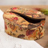 Another "home run" for Ana Maria Gonzales in my book. This small box could be placed almost anywhere and used as a keep-safe for many things, but especially to corral stray jewelry bits and pieces. The interior is plain, stained pinewood, but a bit of cushioning felt could easily be added if desired. I adore the graphic: colorful, bright, happy, and amusing. As with all her boxes (I have five at p... read more