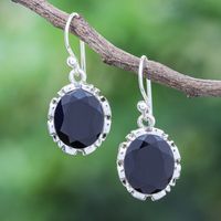 Oval Faceted Black Onyx Dangle Earrings 'Black Allure' Item ID: 2671800457