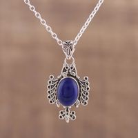 Oval Lapis Lazuli Pendant Necklace from India 'Royal Plumage' Item ID: 2671790882