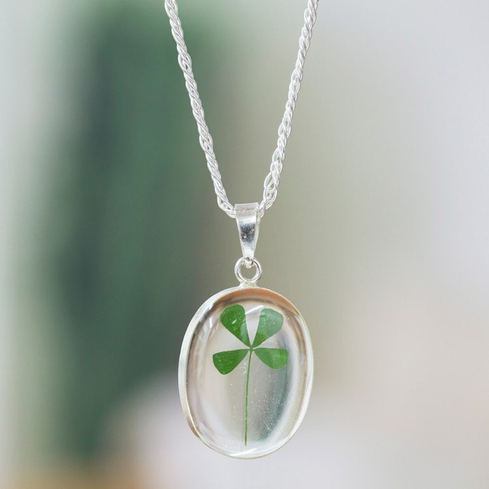 Oval Natural Clover Pendant Necklace from Mexico 'Clover Soul' Item ID: 2671807537