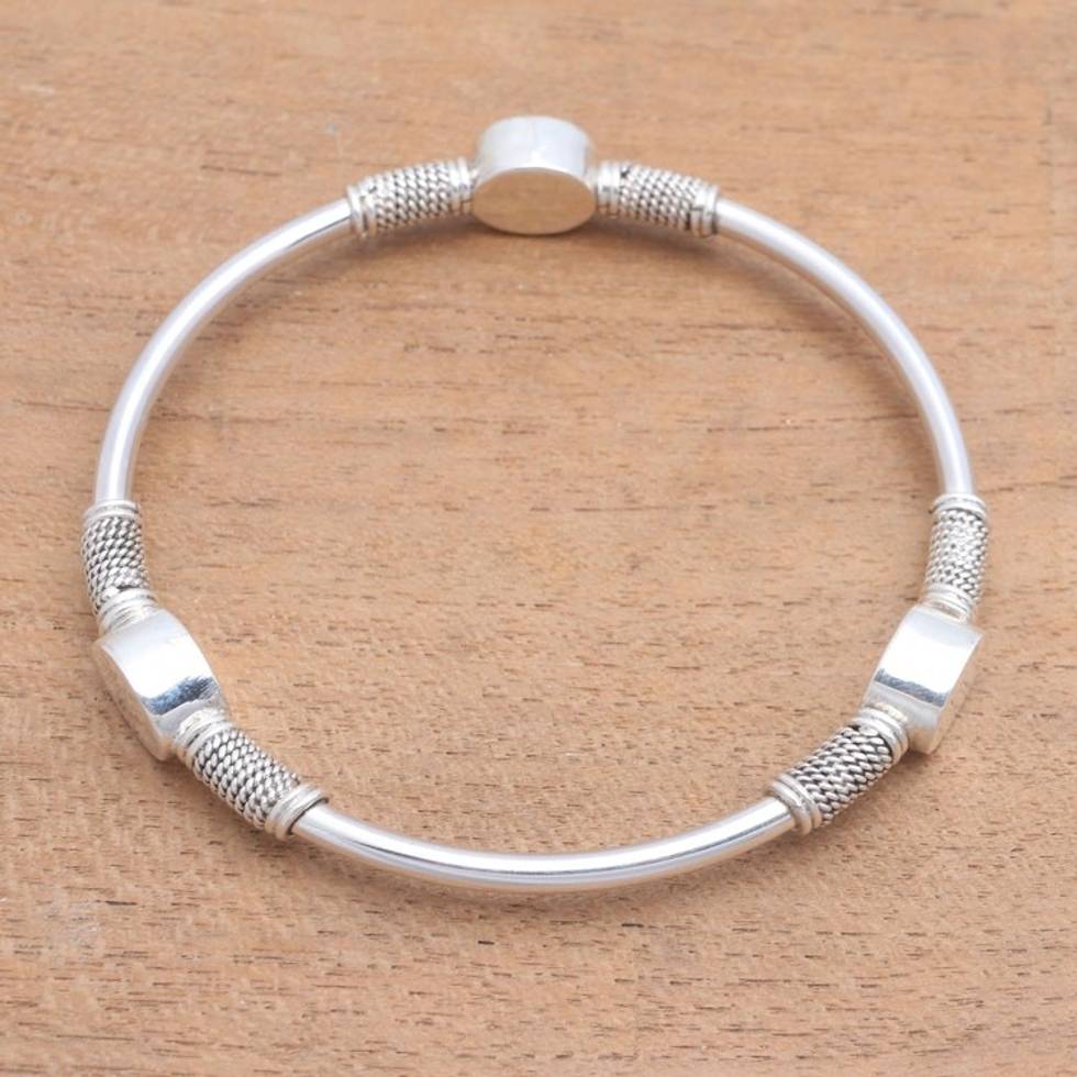 Oval Pattern Sterling Silver Bangle Bracelet from Bali 'Oval Trio' Item ID: 2671744730