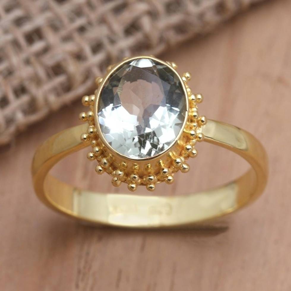 Oval Prasiolite Cocktail Ring in 18k Gold Plated 925 Silver 'Wintry Green' Item ID: 2671667580