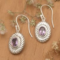 Oval Spiral Faceted One-Carat Amethyst Dangle Earrings 'Spiral Purple Water' Item ID: 2671764355