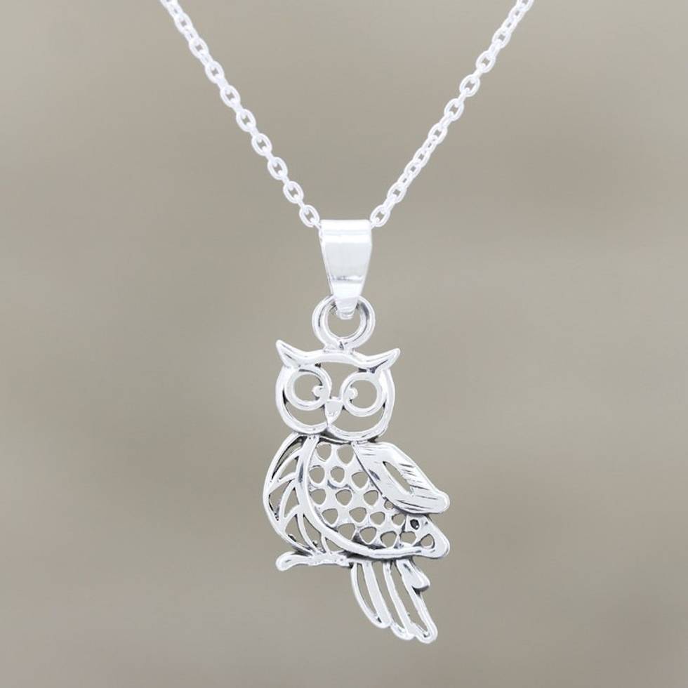 Owl Pendant Necklace Handmade in India 'Jali Owl' Item ID: 2671625504