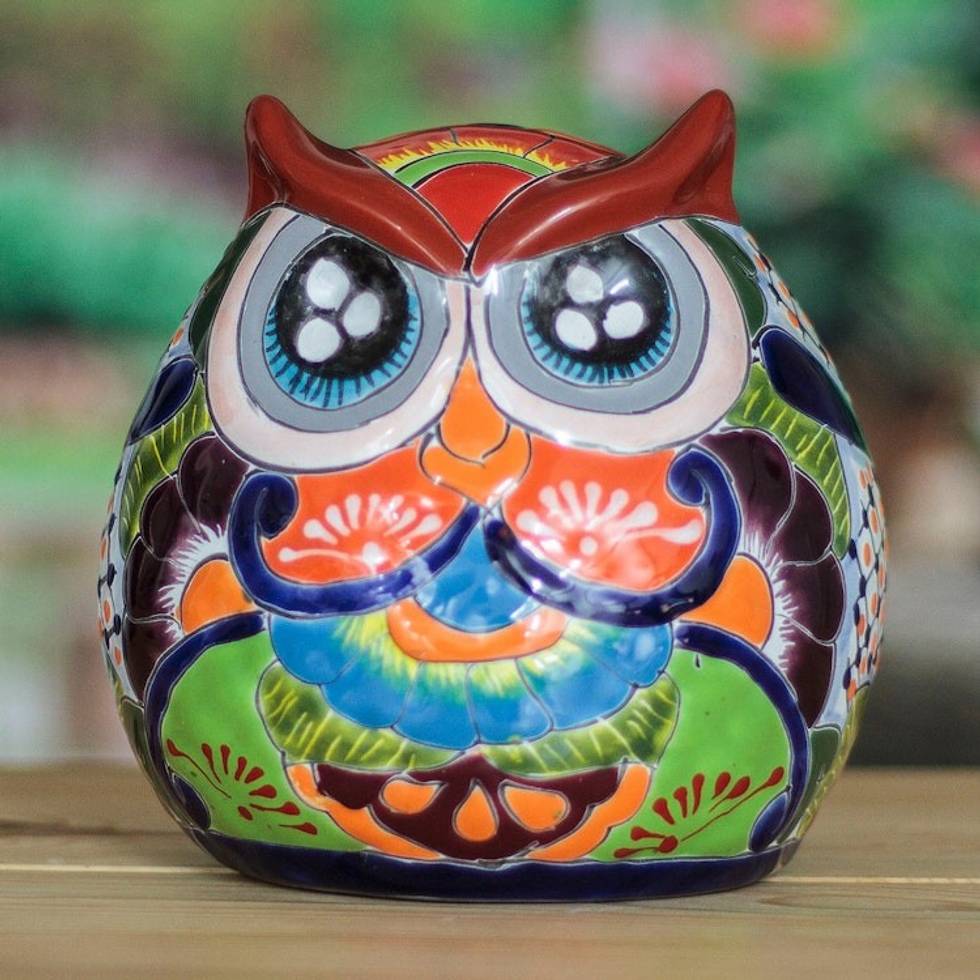 Owl-Themed Floral Hand-Painted Ceramic Sculpture 'Mystic Sweetie' Item ID: 2671807913