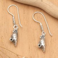 Oxidized and Polished Owl-Shaped Dangle Earrings from Bali 'Night Sage' Item ID: 2671764310
