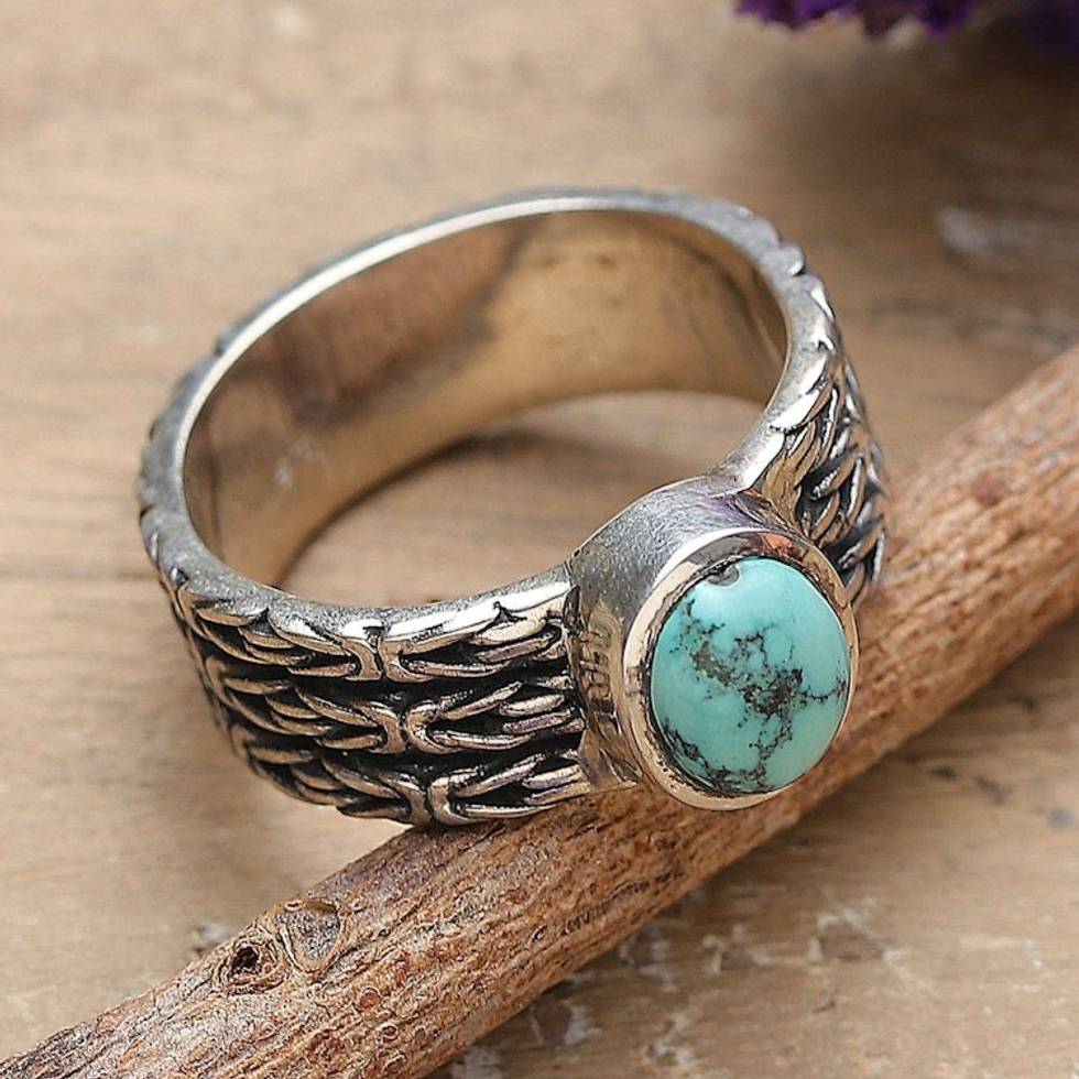 Oxidized and Polished Recon Turquoise Single Stone Ring 'Lagoon Glow' Item ID: 2671783148