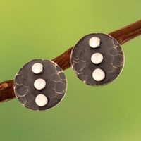 Oxidized and Polished Round Sterling Silver Button Earrings 'Minimalist Trio' Item ID: 2676641801