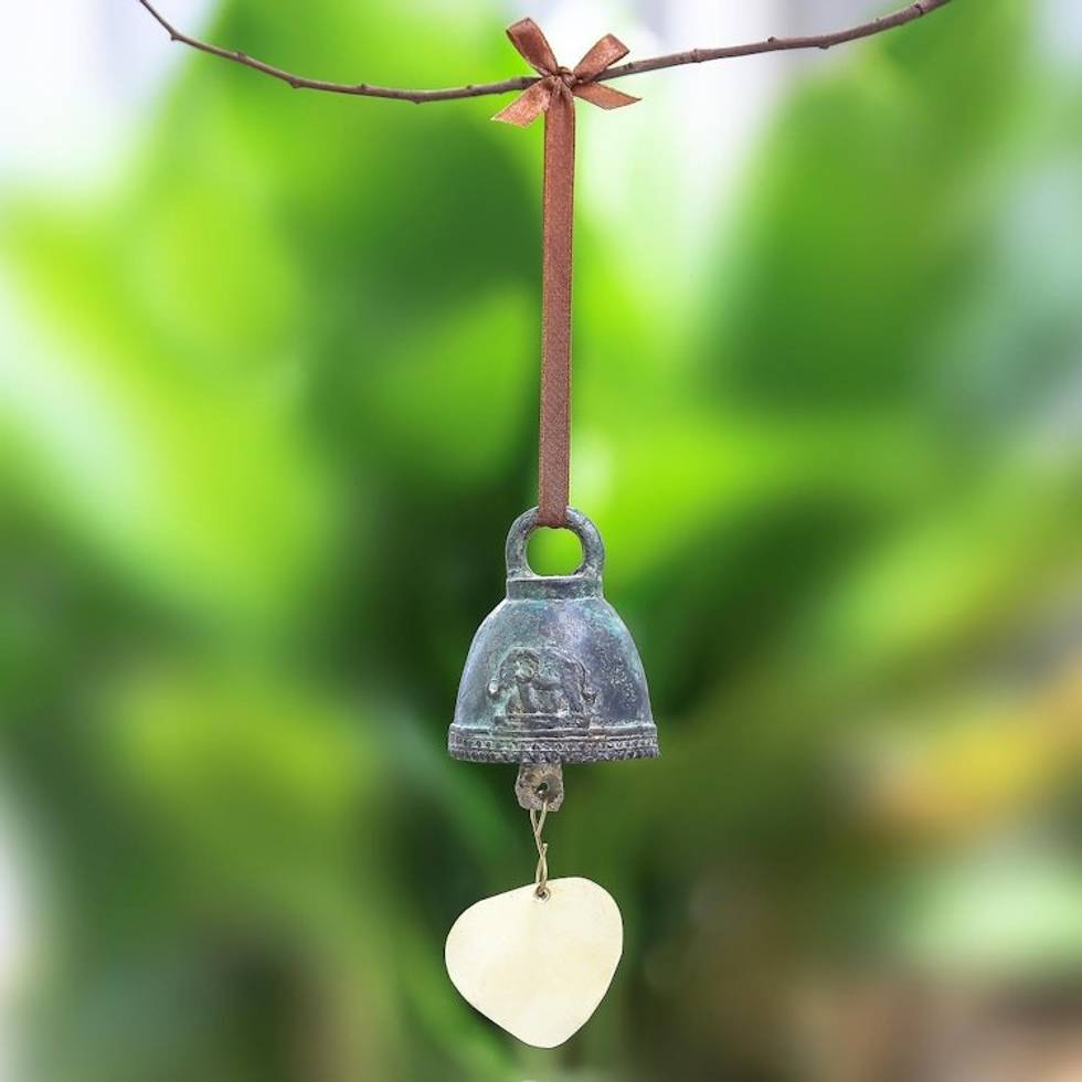 Oxidized Green Elephant Motif Brass Bell from Thailand 'Elephant Ring' Item ID: 2671641479