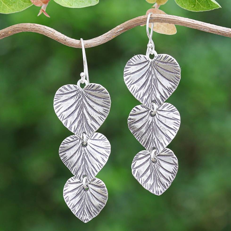 Oxidized Heart-Shaped Leafy Silver Dangle Earrings 'Romantic Foliage' Item ID: 2671797423