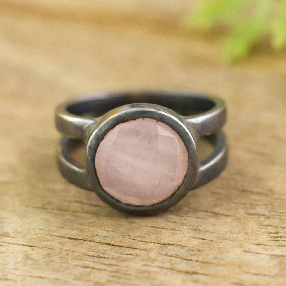 Oxidized Rose Quartz Ring from Peru 'Soft Circle' Item ID: 2671667678