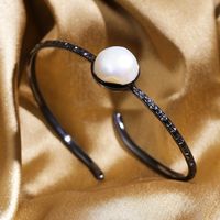 Oxidized Sterling Silver and Cream Pearl Cuff Bracelet 'Delicate Goddess' Item ID: 2671783150