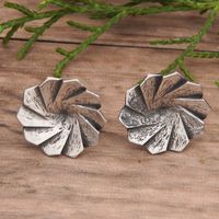 Oxidized Sterling Silver Button Earrings with Wavy Design 'Magical Windmill' Item ID: 2671764578