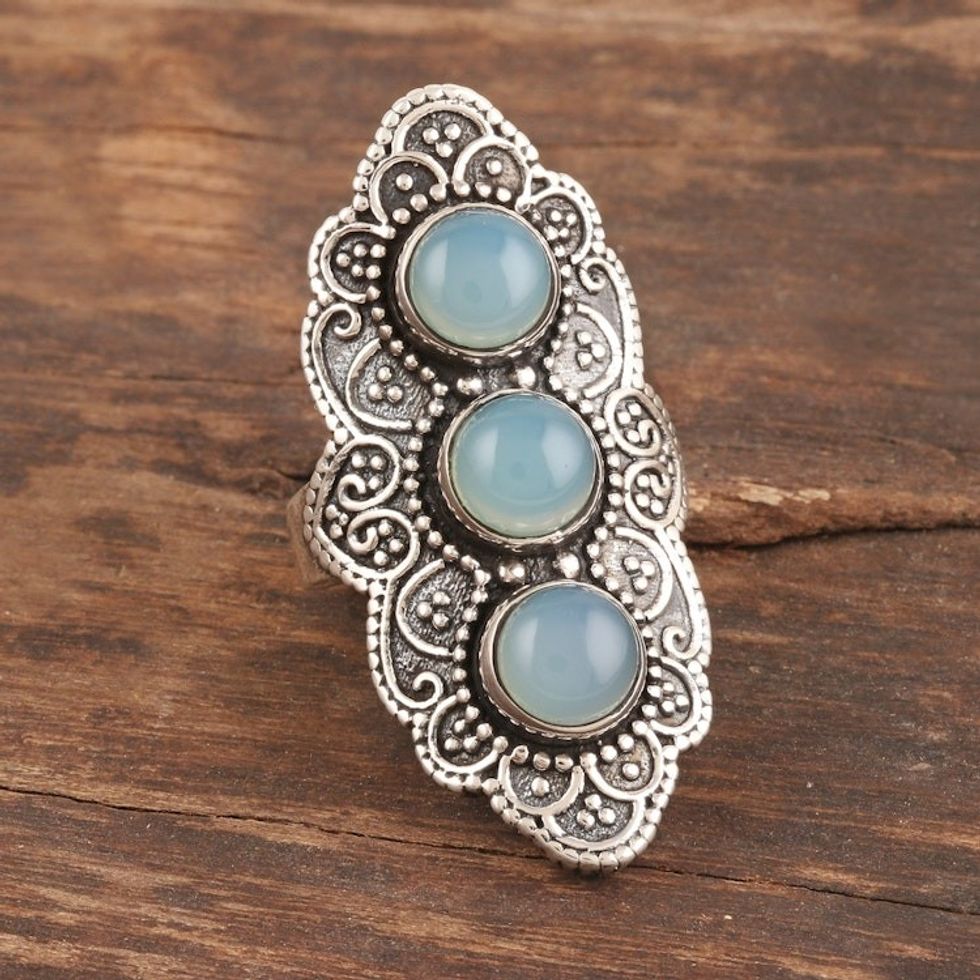 Oxidized Sterling Silver Chalcedony Cocktail Ring 'Goddess Trio' Item ID: 2671789320