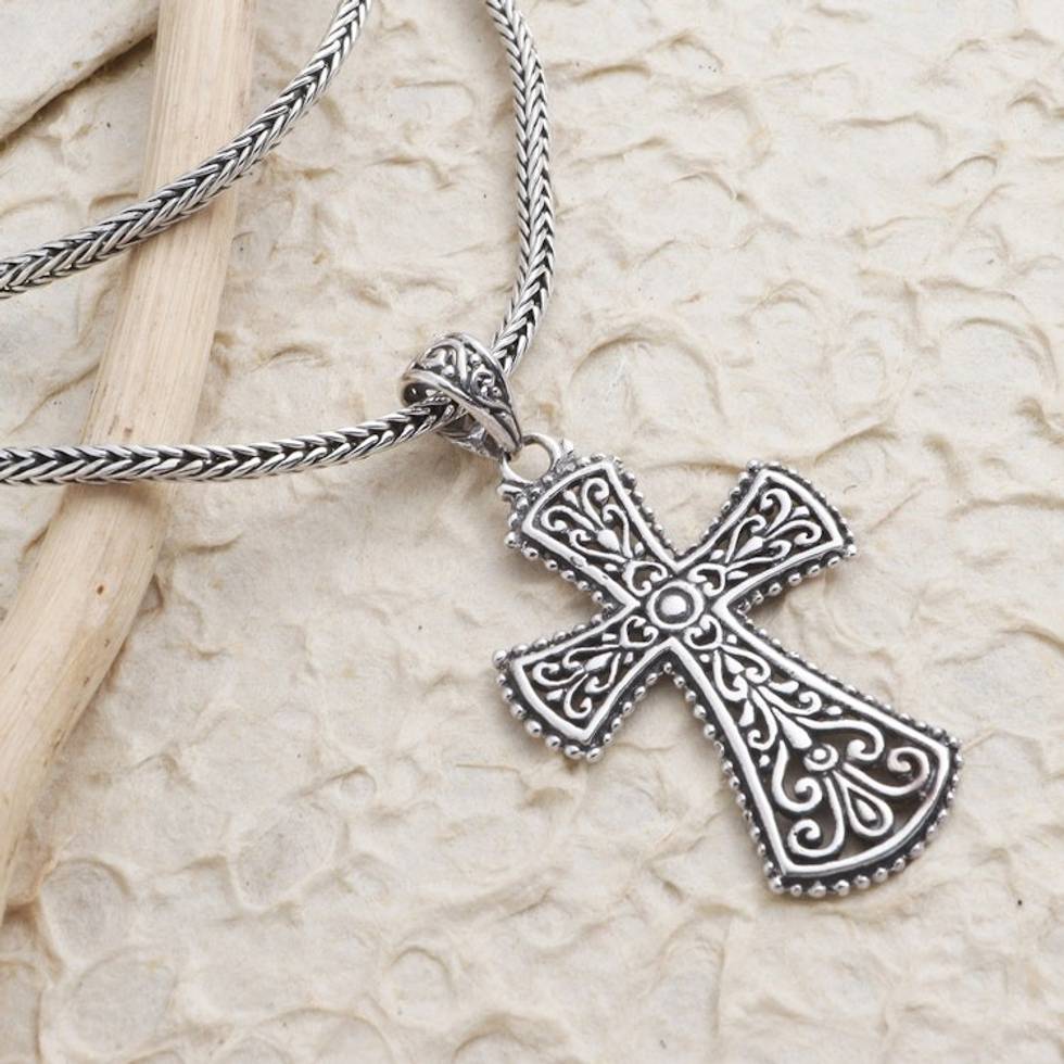 Oxidized Sterling Silver Cross Pendant Necklace 'Modern Faith' Item ID: 2671745600