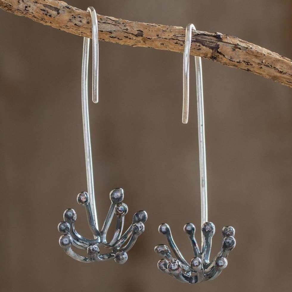Oxidized Sterling Silver Dandelion Drop Earrings 'Dark Dandelion' Item ID: 2671777014