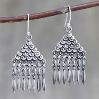 Oxidized Sterling Silver Dangle Earrings Pyramid Motif 'Pyramid of Loops' Item ID: 2669943880