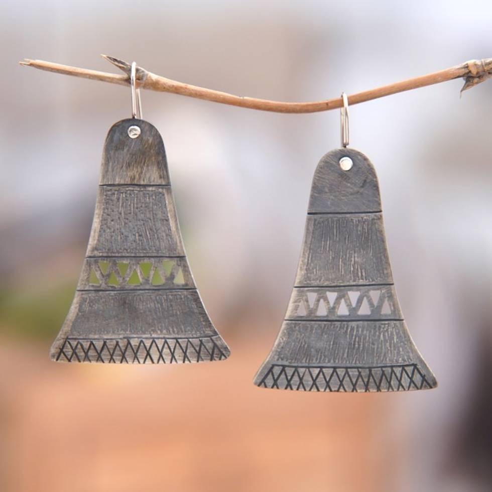 Oxidized Sterling Silver Earrings 'Ancient Bell' Item ID: 2671748589