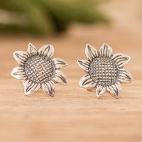 Oxidized Sterling Silver Sunflower Earrings from Guatemala 'Vintage Sunflower' Item ID: 2671776904