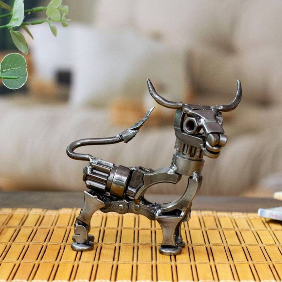 Oxidized Upcycled Bull Metal Sculpture Handmade in Mexico 'Valiant Horns' Item ID: 2676647212
