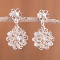 Handcrafted Sterling Silver Filigree Flowers Dangle Earrings 'Exquisite Blossom' Item ID: 2669993443