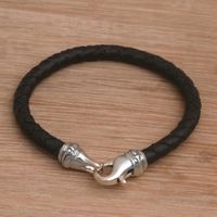 Men's Leather Braided Cord Bracelet from Bali 'Serpent Style' Item ID: 2671821076