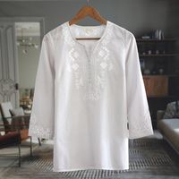 34 Sleeve Grey Cotton Tunic with White Machine Embroidery 'Summer Elegance' Item ID: 2669943909