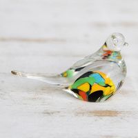 Handblown Brazilian Colorful Bird Art Glass Paperweight 'Confetti Canary' Item ID: 2669935360