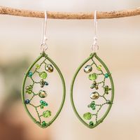 Green Crystal and Glass Beaded Dangle Earrings with Hooks 'Green Crystal Web' Item ID: 2669933190