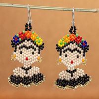Handmade Beaded Frida Dangle Earrings 'Frida in Black' Item ID: 2669931829