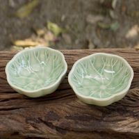 Green Leaf Thai Celadon Canape Dish Pair 'Lotus Leaf' Item ID: 2669930914