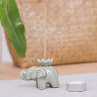 Elephant and Lotus Ceramic Incense Holder Single 'Lotus Elephant' Item ID: 2669897261