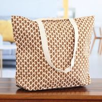 Cotton Tote Bag with Block-Printed Modern Design in Sepia 'Sepia Ties' Item ID: 2669892243
