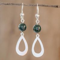 Dark Green Jade and Sterling Silver Dangle Earrings 'Subtlety in Dark Green' Item ID: 2669923755