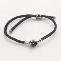 Bali Obsidian and Sterling Silver Cord Unity Bracelet 'Silver Handshake' Item ID: 2669922850