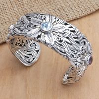 18k Gold-Accented Multi-Gemstone Cuff Bracelet from Bali 'Floral Blessing' Item ID: 2669922135