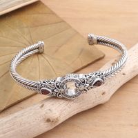 Sterling Silver and Garnet Cuff Bracelet from Bali 'Fiery Gate' Item ID: 2669921849