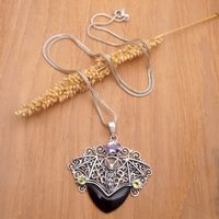 Bat-Inspired Pendant Necklace with Amethyst and Peridot Gems 'Vampire Queen' Item ID: 2669921438