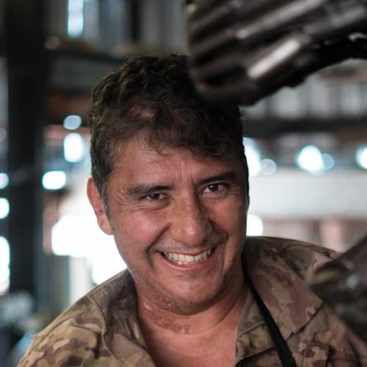 "At first, little by little, I began to craft figures from scraps and discarded mechanical parts — mostly from cars and bicycles. And so I began to create sculptures, soldering the pieces together and giving them shape as I imagined they should look.