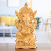 Wood Sculpture of Hindu God Ganesha Hand-Carved in India 'Almighty Ganesha' Item ID: 2669889320