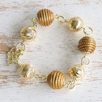 Golden Grass and 18K Gold Plated Bracelet from Brazil 'Delicate Spheres' Item ID: 2669887388