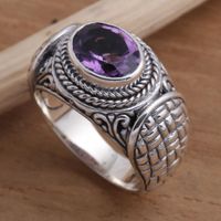 Amethyst and Sterling Silver Signet Ring 'Woven Vines' Item ID: 2669887221