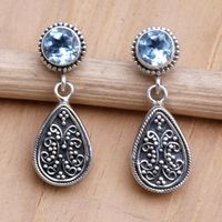 Sterling Silver and Blue Topaz Dangle Earrings from Bali 'Mystic Leaves in Blue' Item ID: 2669887182