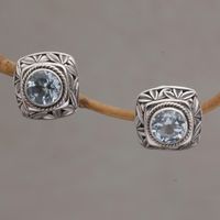 Blue Topaz and Sterling Silver Button Earrings from Bali 'Bamboo Shade' Item ID: 2669887167