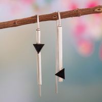 Modern Sterling Silver Drop Earrings with Onyx Triangles 'Triangular Reflection' Item ID: 2669919622